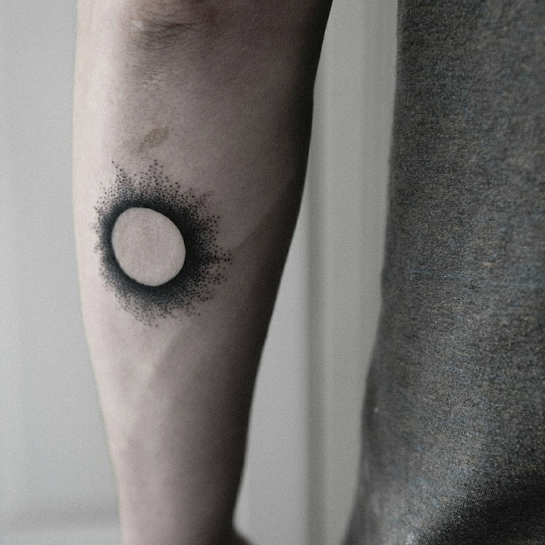 昆明城市领地做旅游顾问的封先生小臂太阳图腾纹身图案